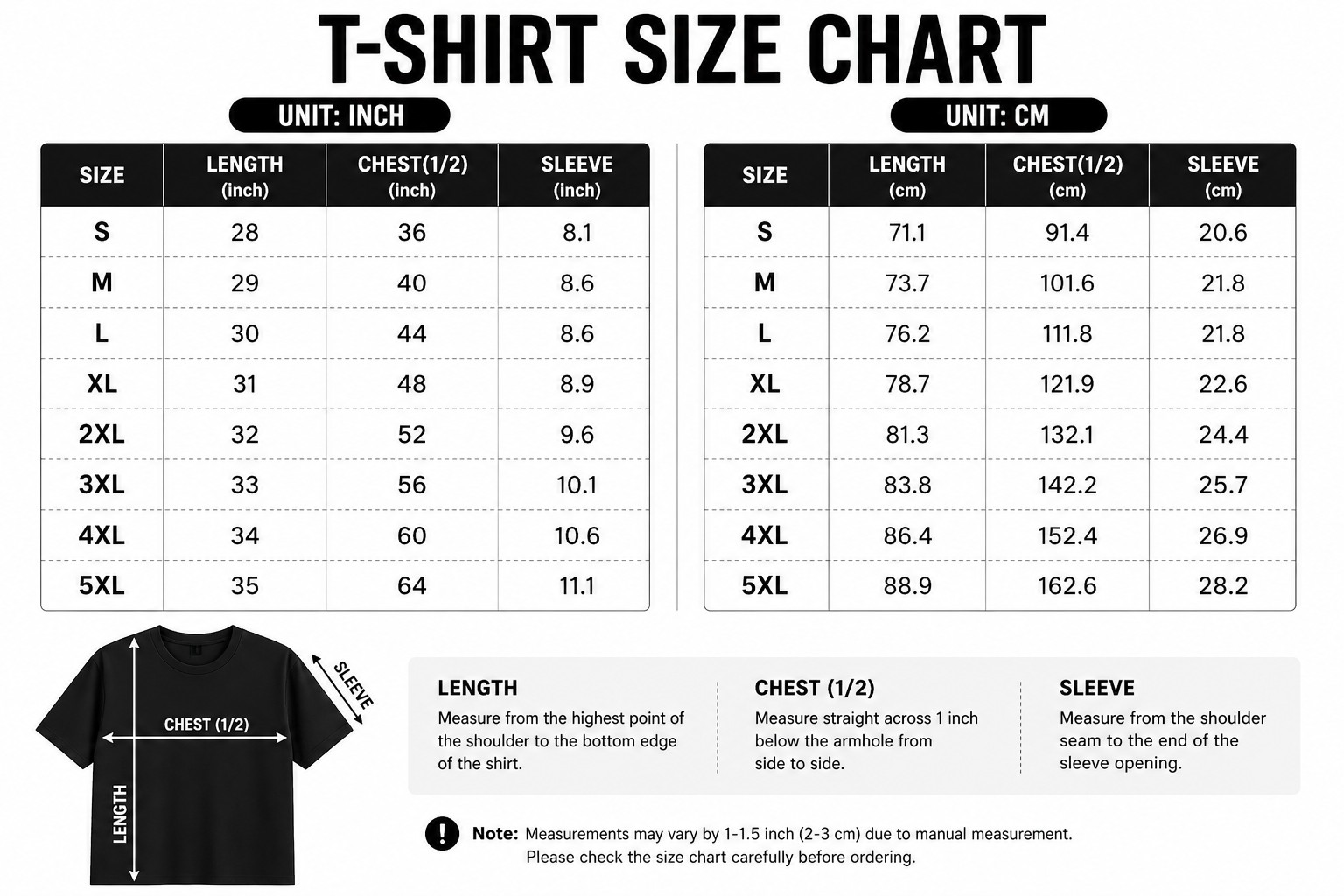 👕 Size Chart